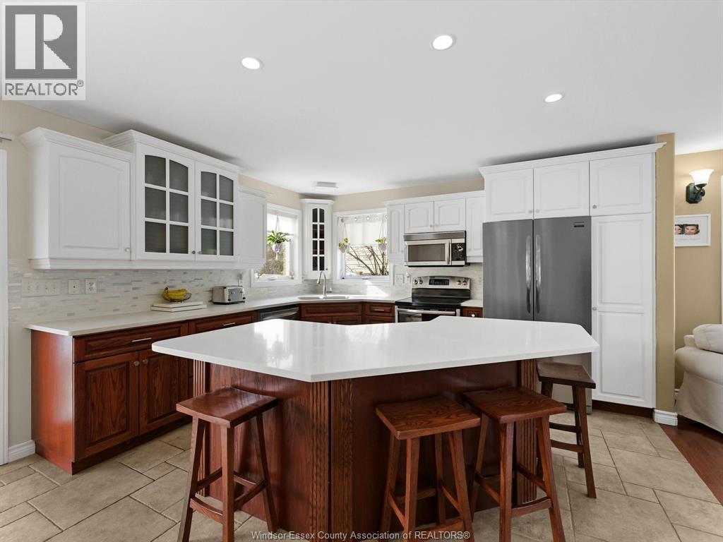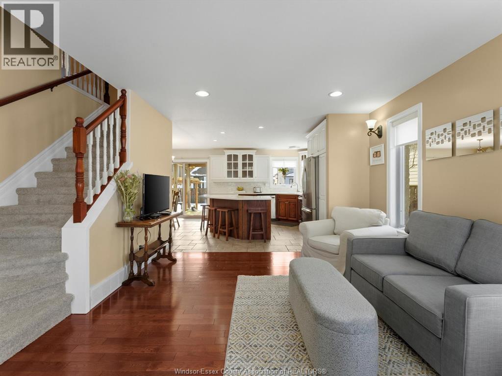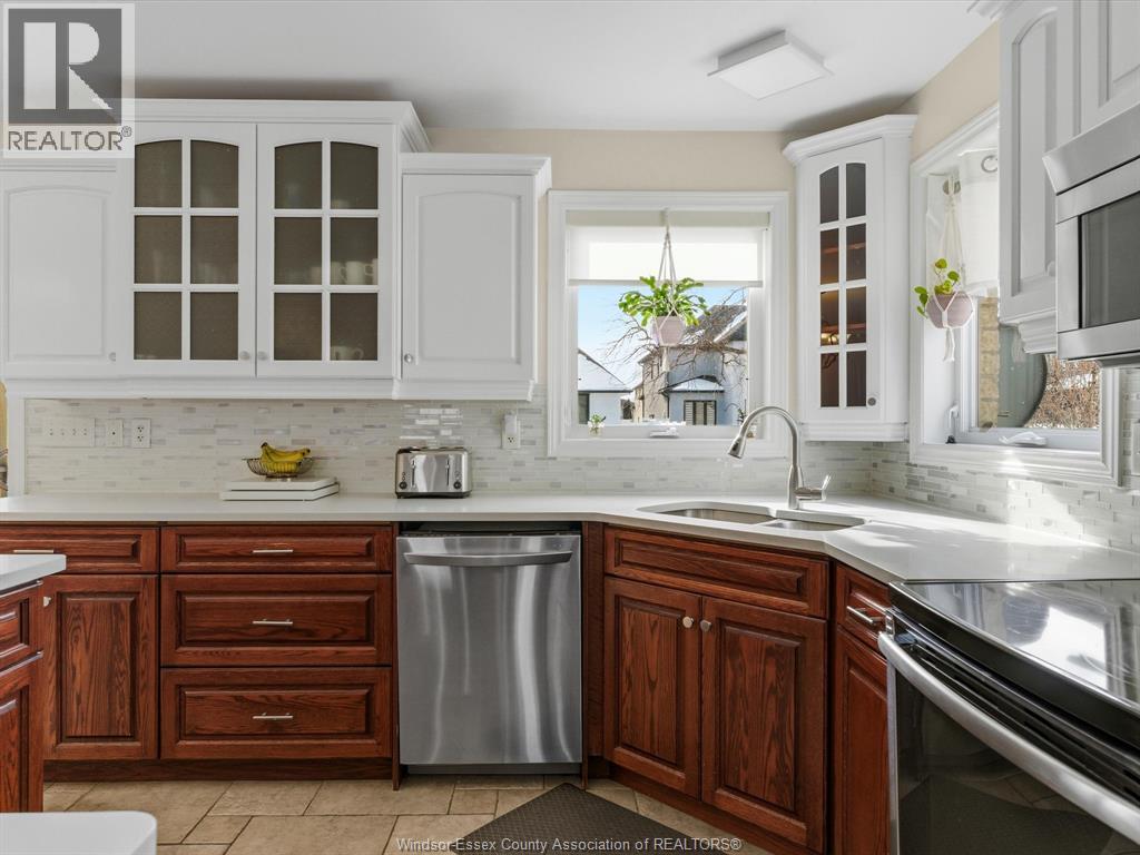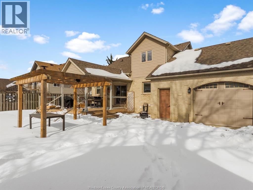Exceptional Lakeshore Living! This unique & stunning 4-bedroom, 3.1-bath brick & stone 1 3/4- storey home offers space, style & versatility for the whole family. Step into a bright, open-concept main floor with hardwood floors, a chef-ready eat-in kitchen featuring a large island, quartz countertops (2023), coffee bar area & abundant cabinetry-perfect for cooking & entertaining. The main-floor primary suite boasts an ensuite and his-and-hers closets, complemented by convenient main-floor laundry and an additional 2-piece bath. Upstairs, three spacious bedrooms and a full bath provide room for family or guests, while the fully finished lower level features a large living area, an office (or potential fifth bedroom), 3-piece bathroom (2019), and utility room-ideal for work, play, or extra living space. Entertain or unwind outdoors in your private, fully fenced backyard, complete with a covered deck, gas barbecue hookup, pergola, and 2 sheds, beautifully landscaped for year-round enjoyment. Additional highlights include a double-car garage with rear garage door for convenient access, included appliances, flexible possession and a prime location near schools, shopping, and amenities. This home effortlessly combines convenience with Lakeshore charm. (id:4555)