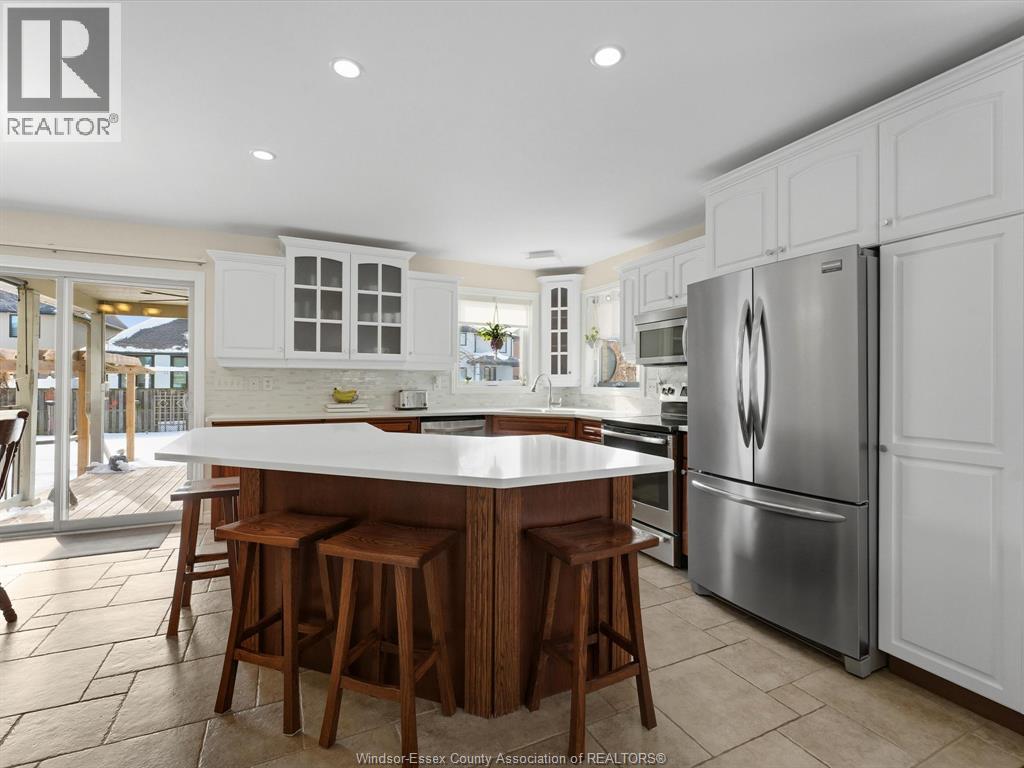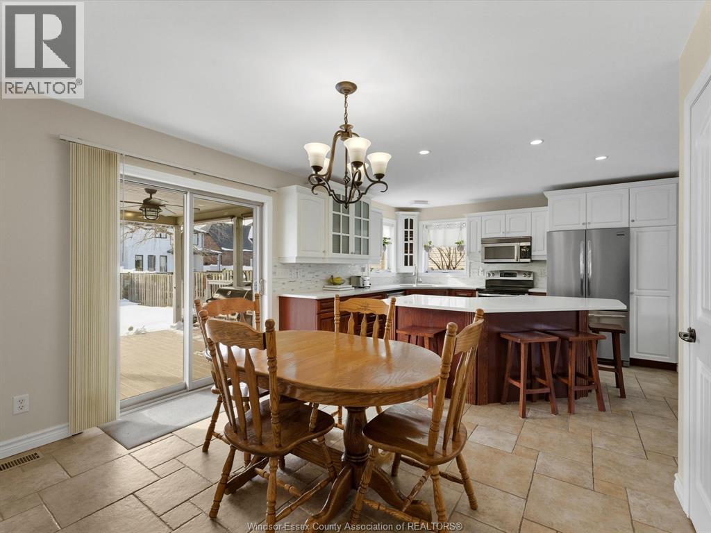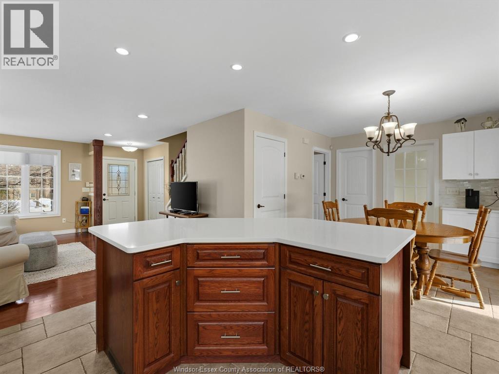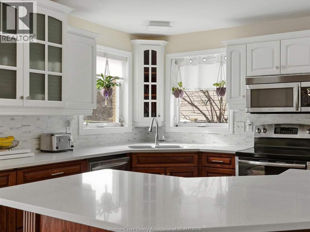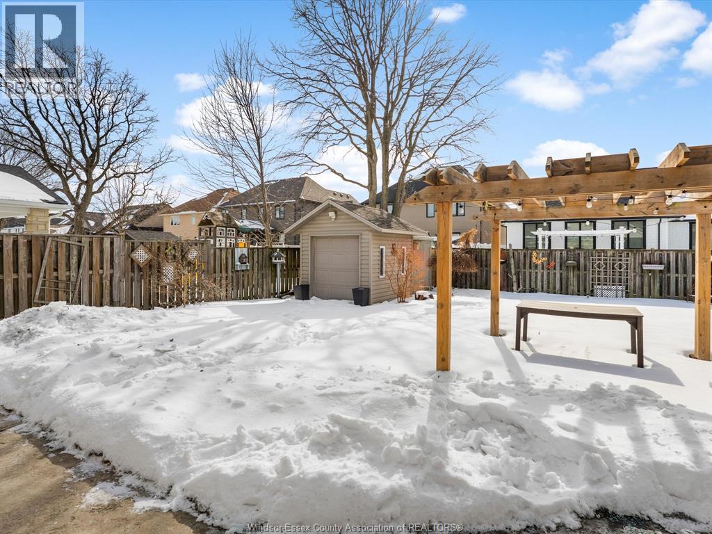 Exceptional Lakeshore Living! This unique & stunning 4-bedroom, 3.1-bath brick & stone 1 3/4- storey home offers space, style & versatility for the whole family. Step into a bright, open-concept main floor with hardwood floors, a chef-ready eat-in kitchen featuring a large island, quartz countertops (2023), coffee bar area & abundant cabinetry-perfect for cooking & entertaining. The main-floor primary suite boasts an ensuite and his-and-hers closets, complemented by convenient main-floor laundry and an additional 2-piece bath. Upstairs, three spacious bedrooms and a full bath provide room for family or guests, while the fully finished lower level features a large living area, an office (or potential fifth bedroom), 3-piece bathroom (2019), and utility room-ideal for work, play, or extra living space. Entertain or unwind outdoors in your private, fully fenced backyard, complete with a covered deck, gas barbecue hookup, pergola, and 2 sheds, beautifully landscaped for year-round enjoyment. Additional highlights include a double-car garage with rear garage door for convenient access, included appliances, flexible possession and a prime location near schools, shopping, and amenities. This home effortlessly combines convenience with Lakeshore charm. (id:4555)