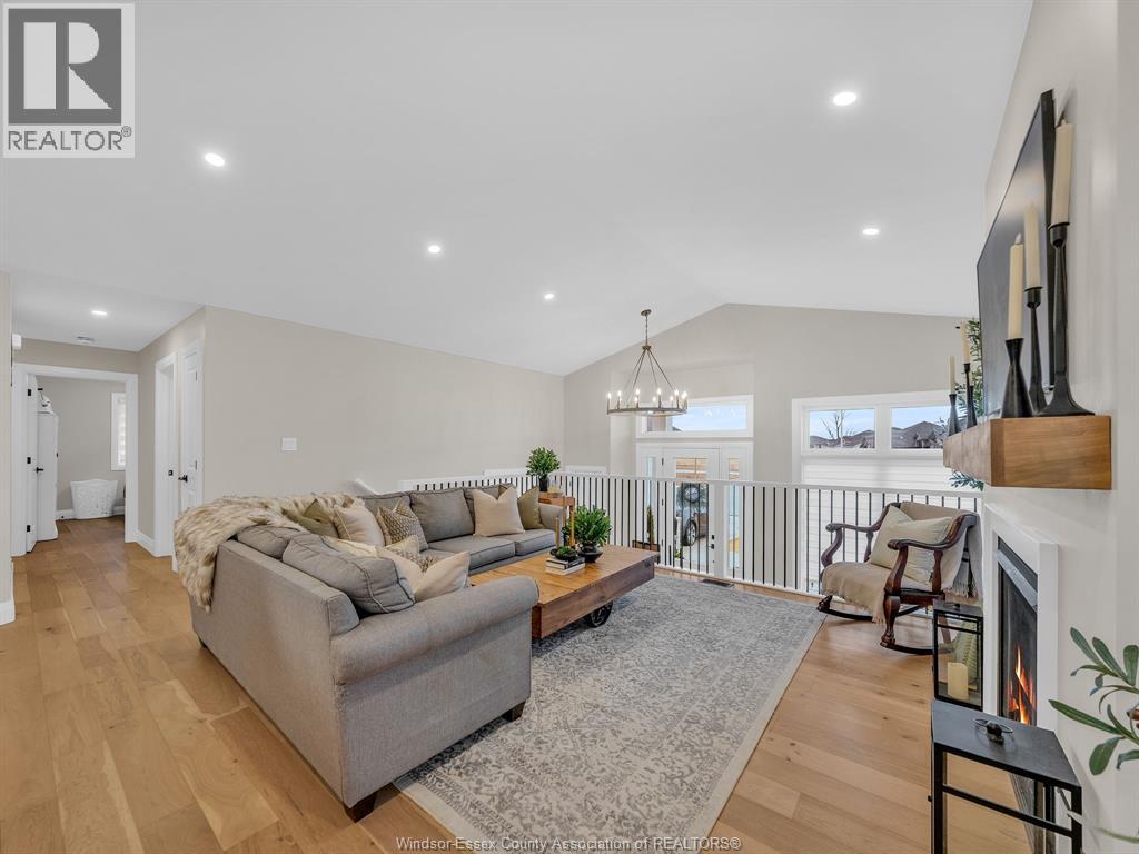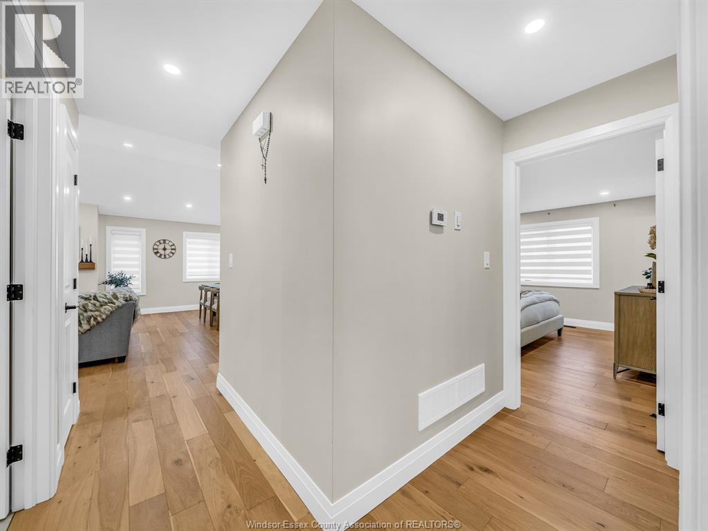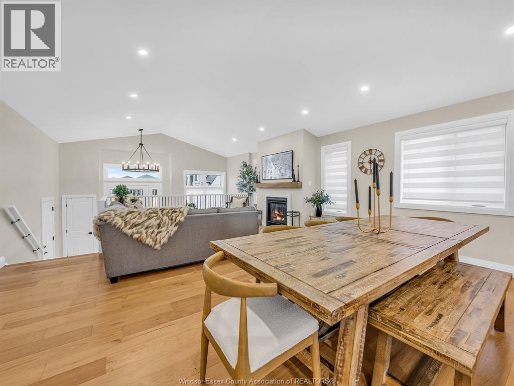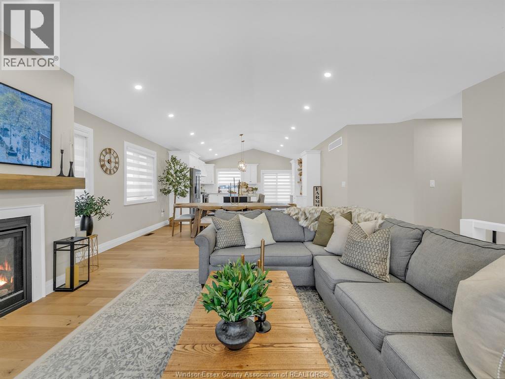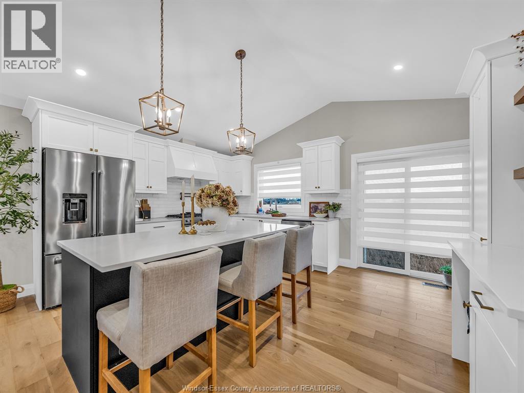 Located in the sought after Kingsbridge neighbourhood of Amherstburg, this custom-built raised ranch by Royal Oak Luxury Builders showcases modern design, quality craftsmanship, and high-end finishes throughout. Built in 2022  set on a 51.95 ft x 154.75 ft lot, this 4 bedroom, 3 full bathroom home offers a well-designed layout with spacious bedrooms and vaulted ceilings that add openness to the living space. Engineered hardwood flooring runs throughout the home, complemented by white custom cabinetry and white quartz countertops for a clean and timeless look. The primary bedroom includes a private ensuite, while the fully finished lower level features an in-law suite, providing excellent flexibility for extended family or guests.  Situated on a deep lot with no rear neighbours, overlooking greenspace, just steps from Pat Thrasher Park, a convenient bonus for outdoor enjoyment. (id:4555)