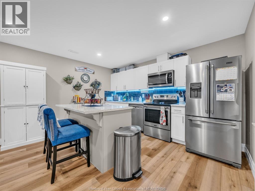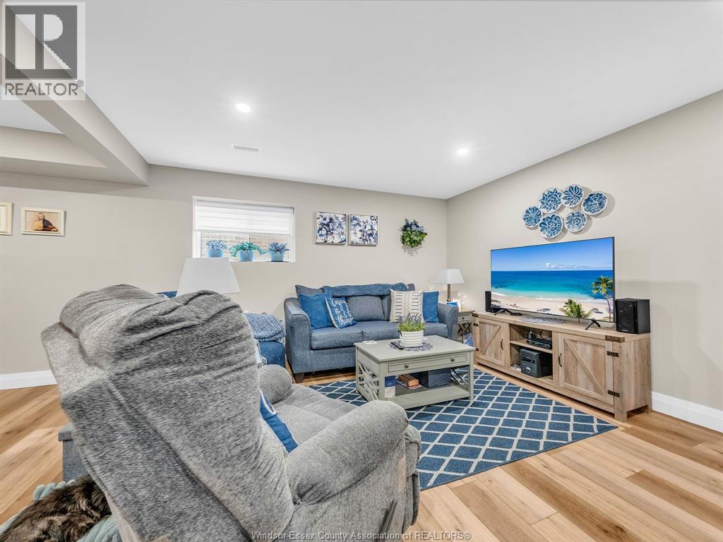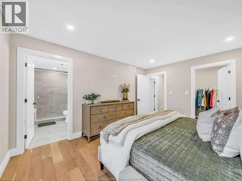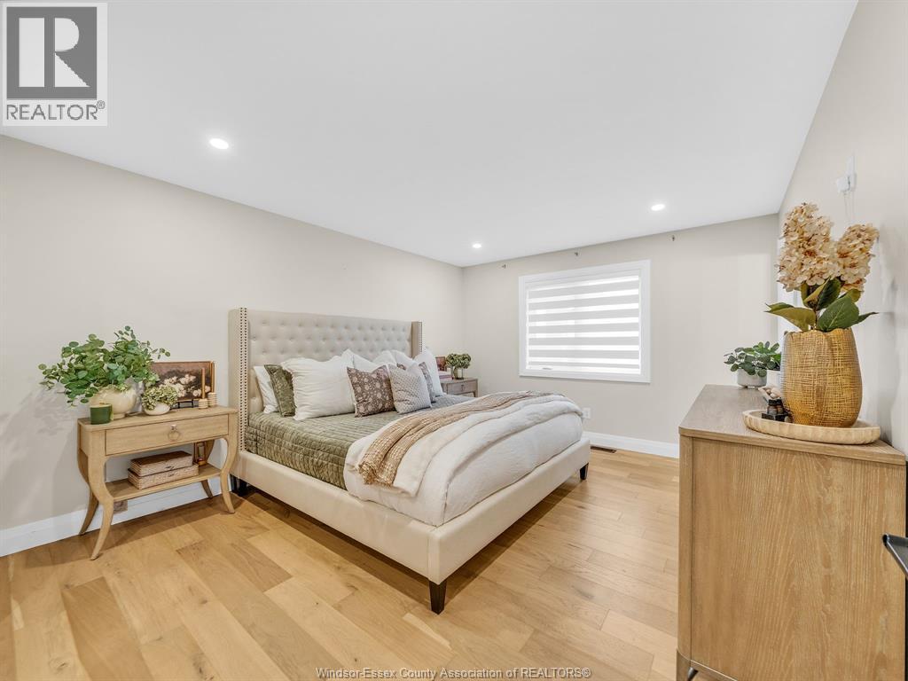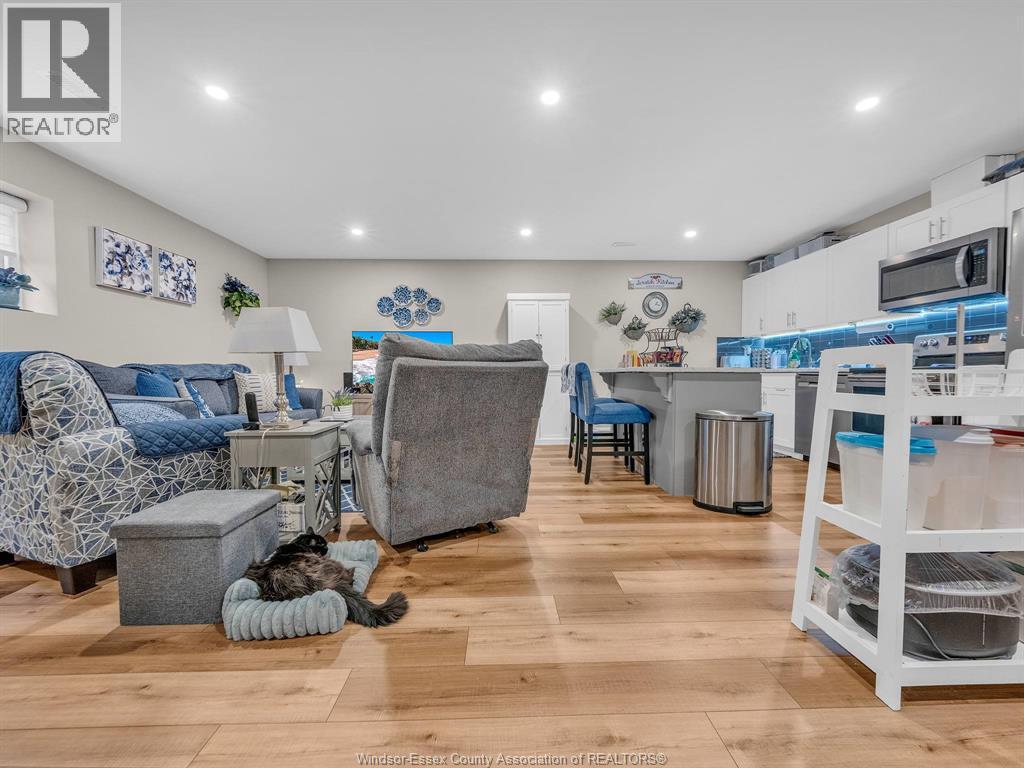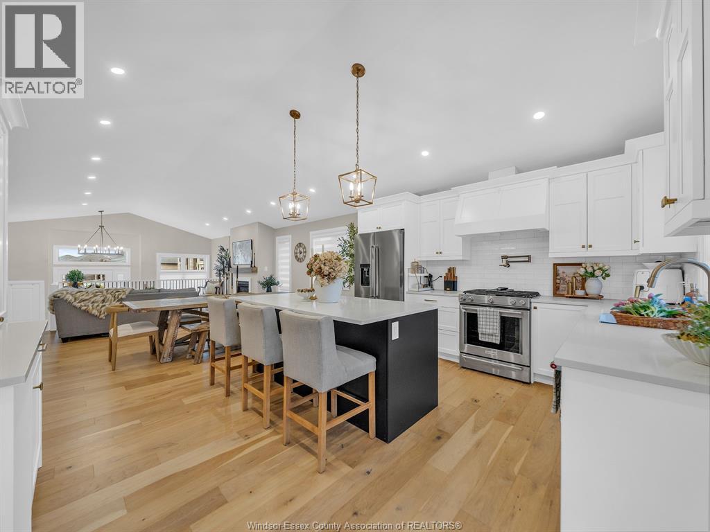 Located in the sought after Kingsbridge neighbourhood of Amherstburg, this custom-built raised ranch by Royal Oak Luxury Builders showcases modern design, quality craftsmanship, and high-end finishes throughout. Built in 2022  set on a 51.95 ft x 154.75 ft lot, this 4 bedroom, 3 full bathroom home offers a well-designed layout with spacious bedrooms and vaulted ceilings that add openness to the living space. Engineered hardwood flooring runs throughout the home, complemented by white custom cabinetry and white quartz countertops for a clean and timeless look. The primary bedroom includes a private ensuite, while the fully finished lower level features an in-law suite, providing excellent flexibility for extended family or guests.  Situated on a deep lot with no rear neighbours, overlooking greenspace, just steps from Pat Thrasher Park, a convenient bonus for outdoor enjoyment. (id:4555)