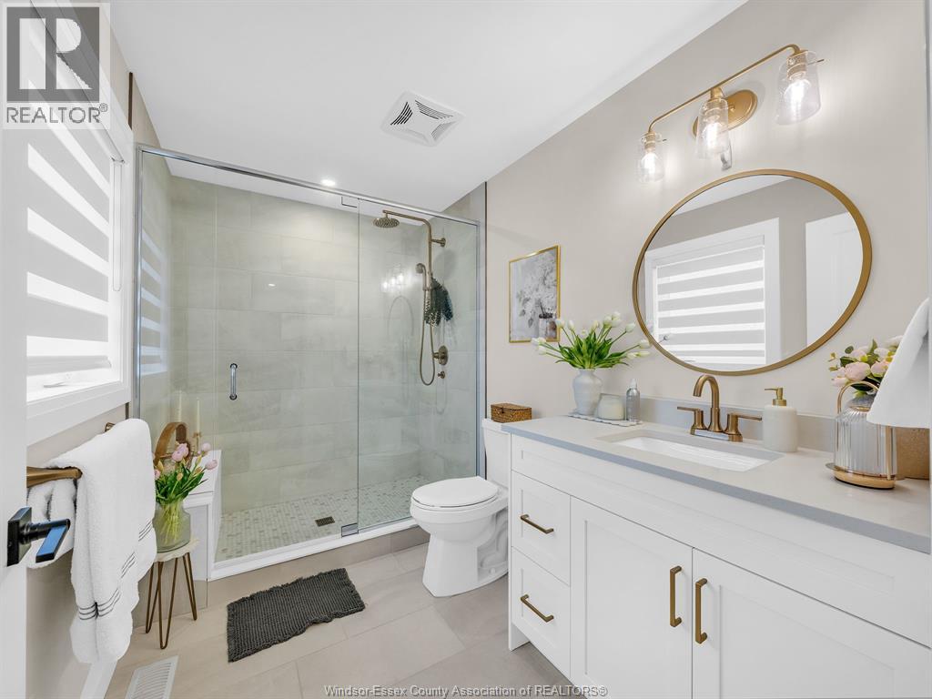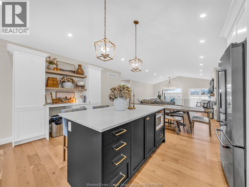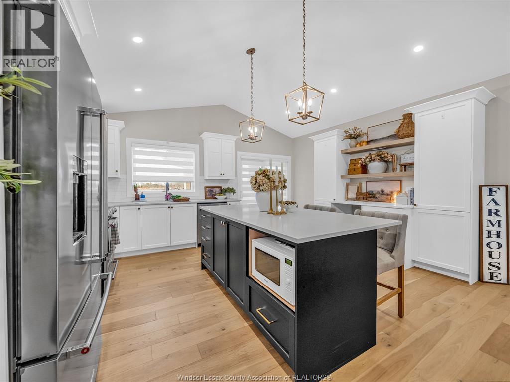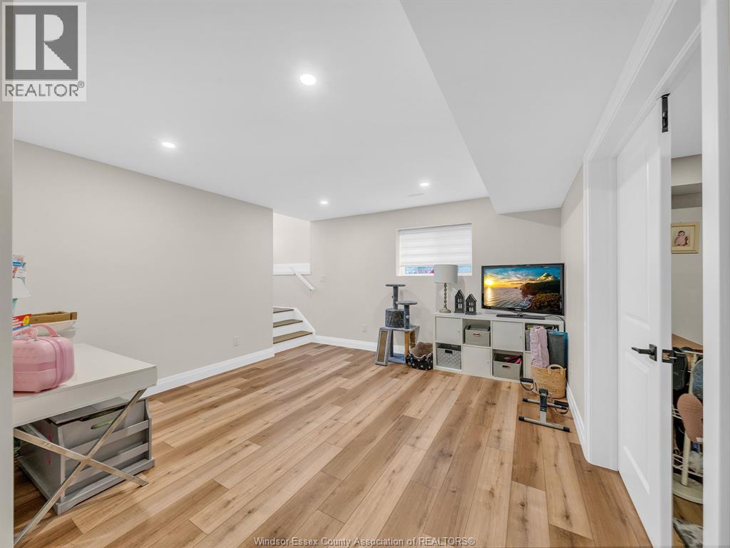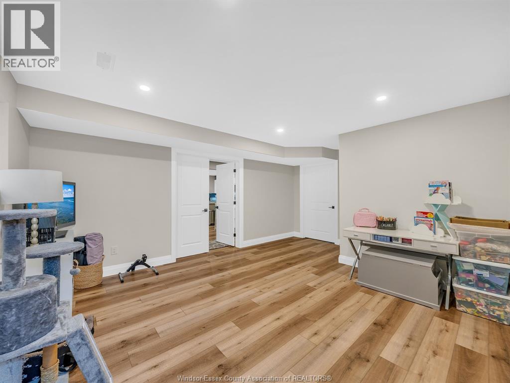 Located in the sought after Kingsbridge neighbourhood of Amherstburg, this custom-built raised ranch by Royal Oak Luxury Builders showcases modern design, quality craftsmanship, and high-end finishes throughout. Built in 2022  set on a 51.95 ft x 154.75 ft lot, this 4 bedroom, 3 full bathroom home offers a well-designed layout with spacious bedrooms and vaulted ceilings that add openness to the living space. Engineered hardwood flooring runs throughout the home, complemented by white custom cabinetry and white quartz countertops for a clean and timeless look. The primary bedroom includes a private ensuite, while the fully finished lower level features an in-law suite, providing excellent flexibility for extended family or guests.  Situated on a deep lot with no rear neighbours, overlooking greenspace, just steps from Pat Thrasher Park, a convenient bonus for outdoor enjoyment. (id:4555)