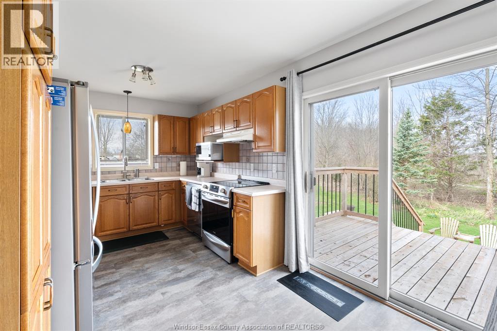 Backyard views of the Chrysler Canada Greenway set the tone for this beautifully maintained raised ranch, perfectly positioned on a unique pie-shaped corner lot in the heart of the county. Offering 3 bedrooms and 2 full bathrooms, the main level features a bright, open-concept living and dining space with hardwood floors and vaulted ceilings. The oak kitchen provides a warm, functional layout and leads to a spacious two-tier sundeck, ideal for relaxing or entertaining while enjoying peaceful views of the trail and surrounding green space. The primary bedroom includes a walk-in closet with convenient cheater access to the 4-piece bath, with two additional bedrooms completing the main level. The fully finished lower level adds valuable living space with a large family room featuring a gas fireplace, a rec room or potential fourth bedroom, a 3-piece bathroom, laundry, and ample storage. Outside, enjoy beautifully landscaped grounds with a firepit, raised garden beds, and plenty of space to unwind. Complete with a double garage and cement driveway, this move-in ready home offers comfort, space, and an exceptional location. (id:4555)